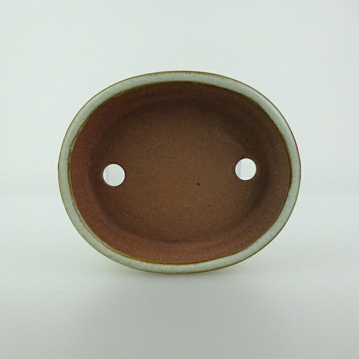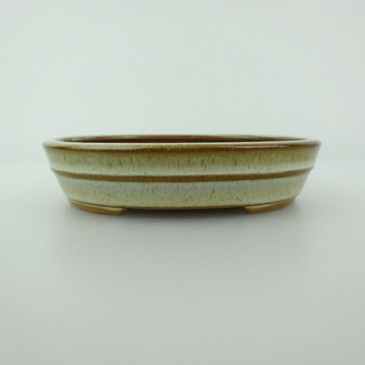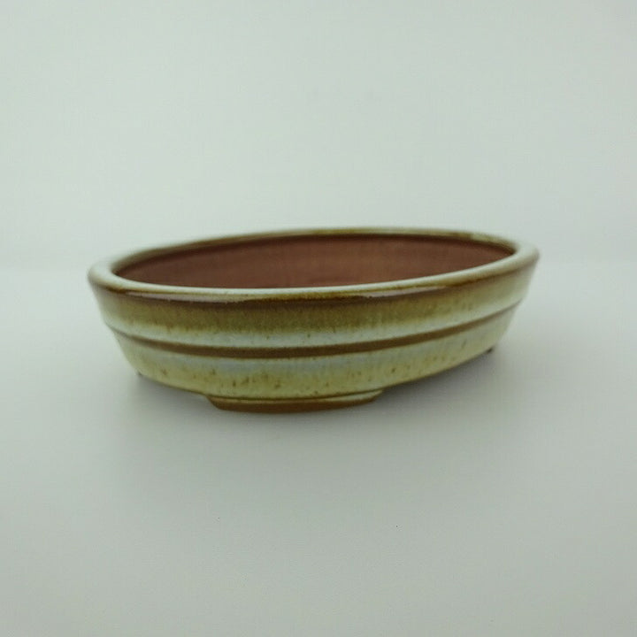 盆栽鉢 青香 小型 長辺 約12cm 楕円鉢 中帯 釉薬 j1200292879