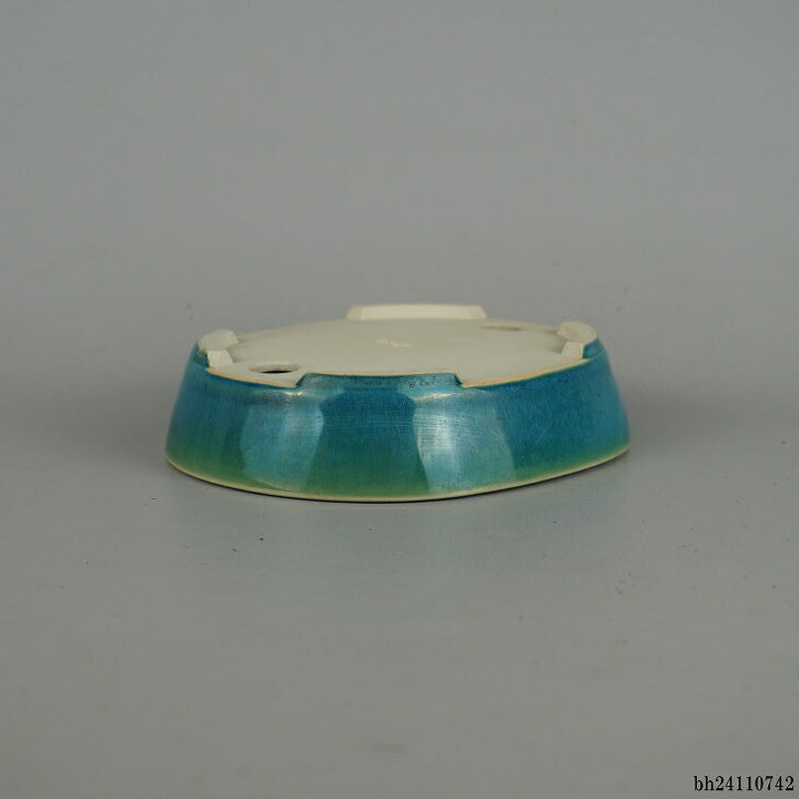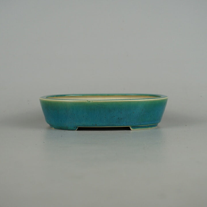 盆栽鉢 青香 小型 長辺 約14.5cm 楕円鉢 釉薬 c1198412209