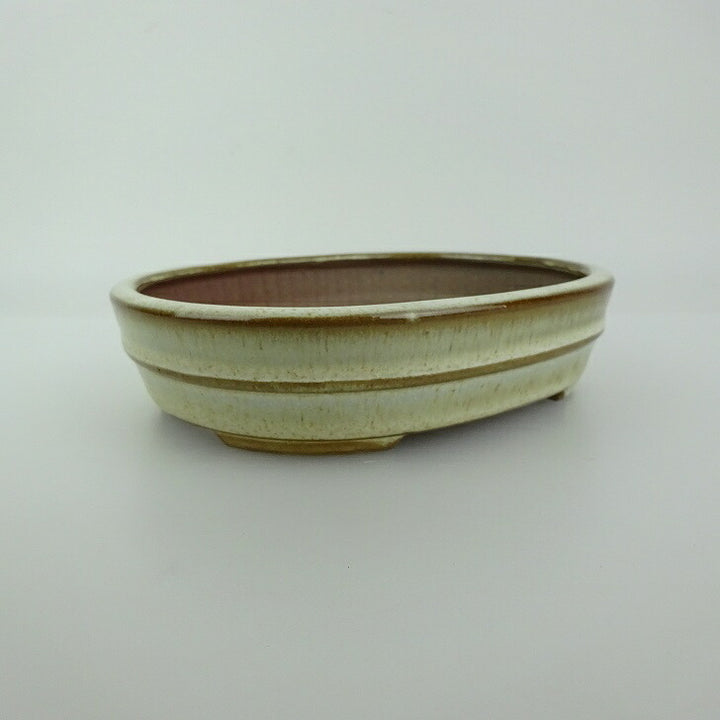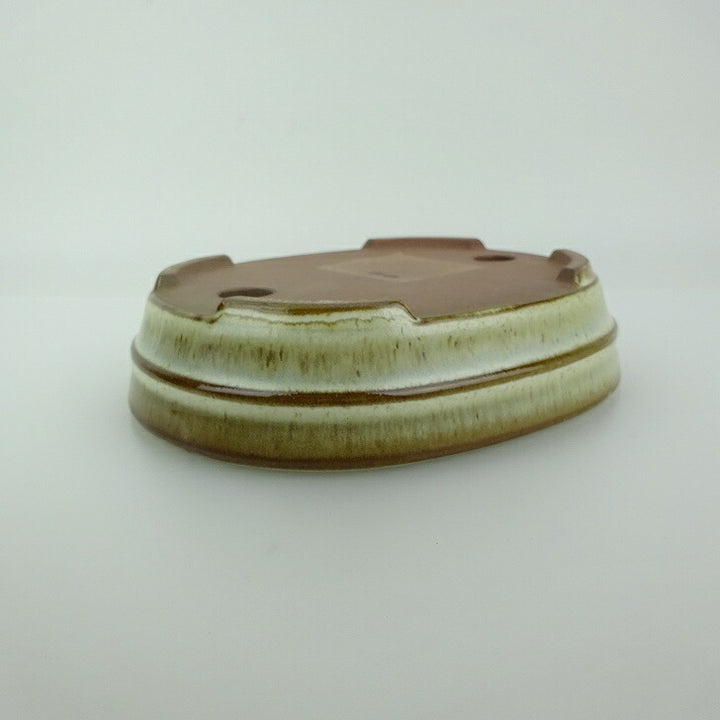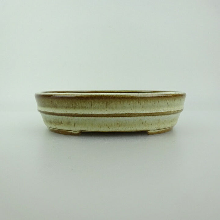 盆栽鉢 青香 小型 長辺 約14.6cm 楕円鉢 中帯 釉薬 新品 数量物 1198408909