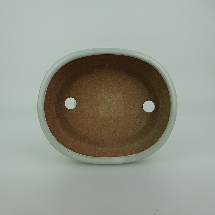 盆栽鉢 青香 小型 長辺 約14.8cm 楕円鉢 中帯 釉薬 新品 数量物 u1198420296