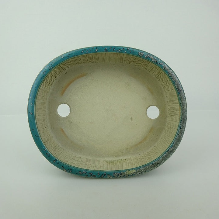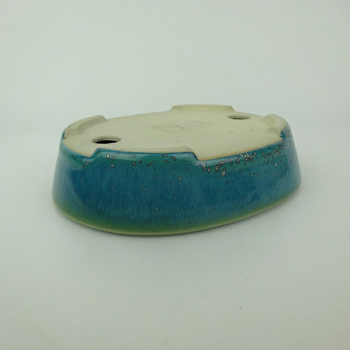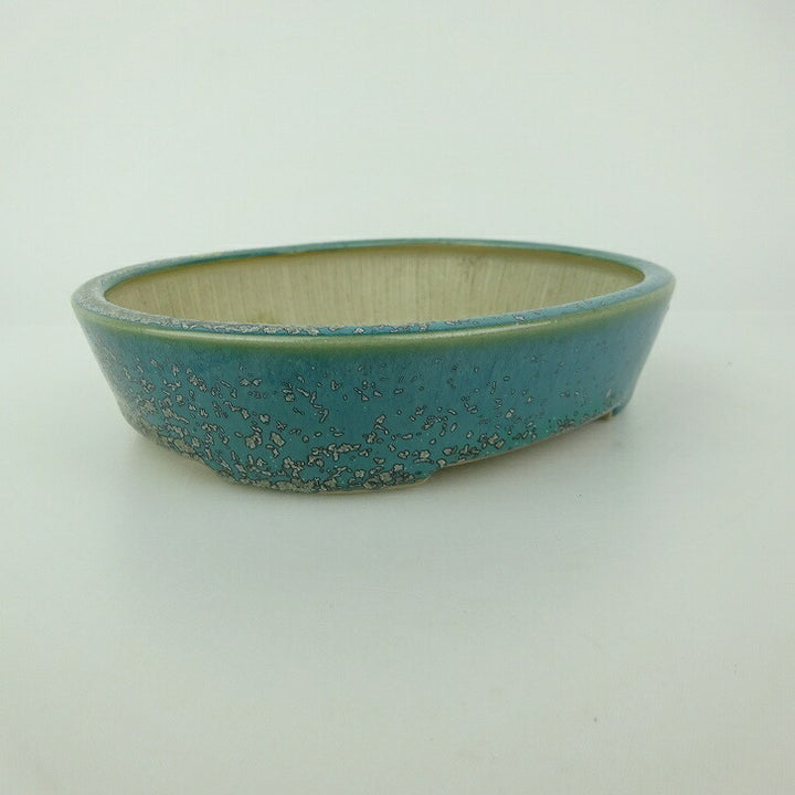 盆栽鉢 青香 小型 長辺 約14.8cm 楕円鉢 釉薬 j1198417614