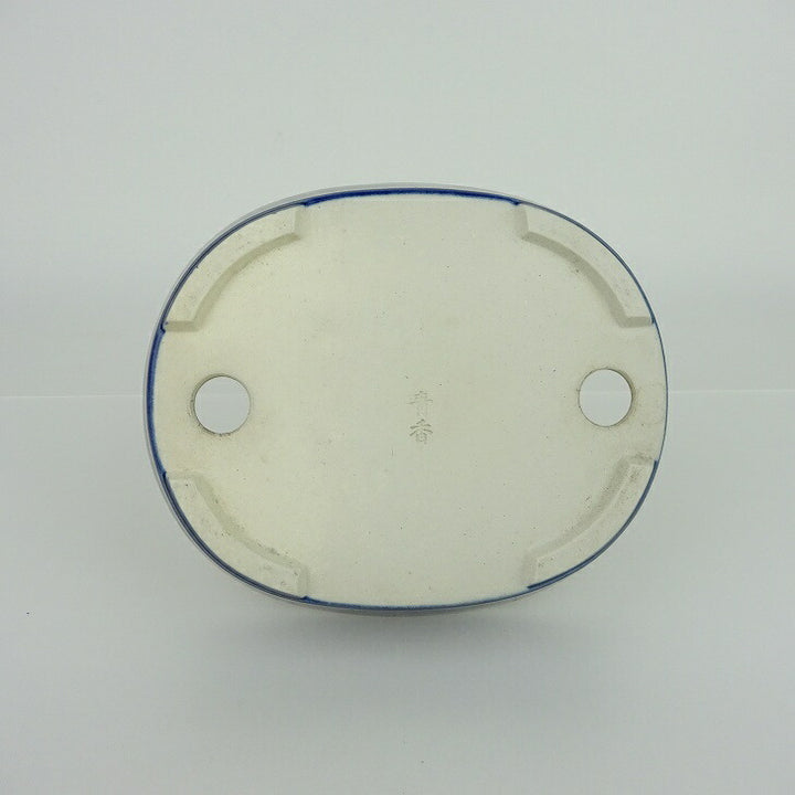 盆栽鉢 青香 小型 長辺 約14.8cm 楕円鉢 釉薬 o1198427375