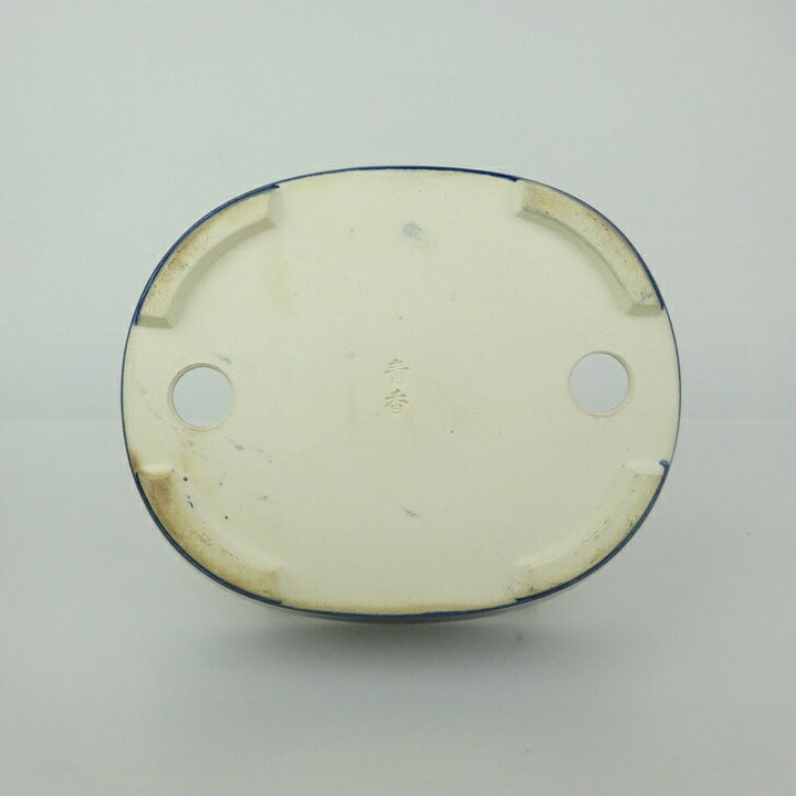 盆栽鉢 青香 小型 長辺 約15cm 楕円鉢 釉薬 k1198411958