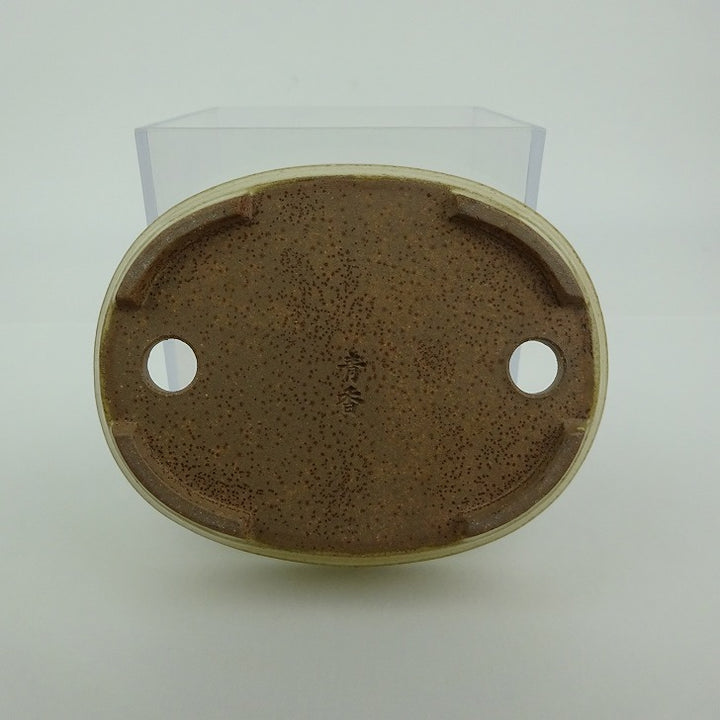 盆栽鉢 青香 小型 長辺 約9.8cm 楕円鉢 中帯 釉薬 v1198437329