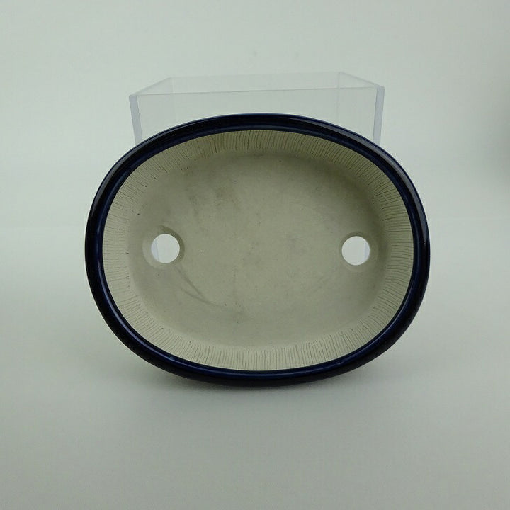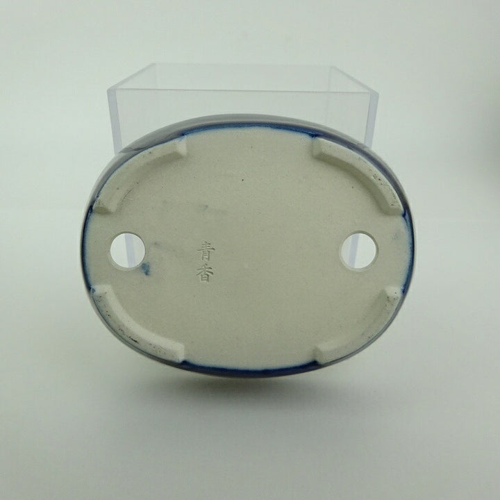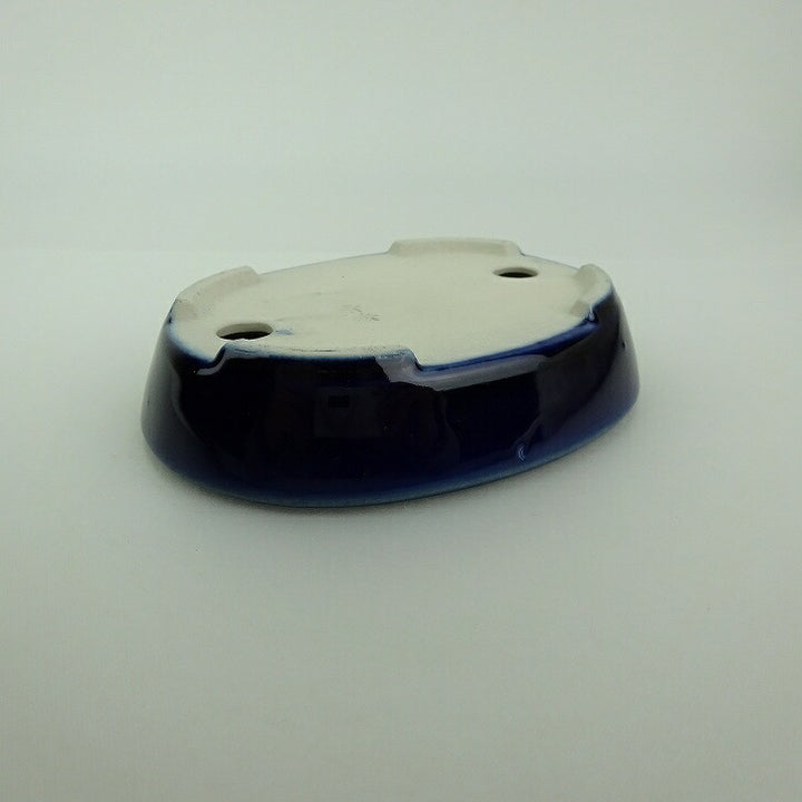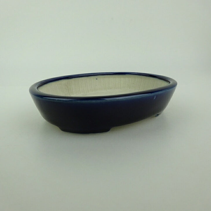 盆栽鉢 青香 小型 長辺 約9.8cm 楕円鉢 釉薬 r1198409810
