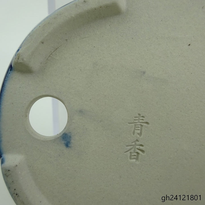 盆栽鉢 青香 小型 長辺 約 9.8cm 楕円 鉢 釉薬 現品 品名青香...