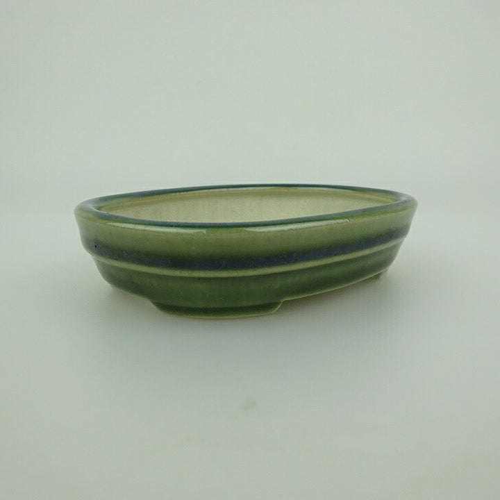 盆栽鉢 青香 小鉢 長辺 約10cm 楕円鉢 中帯 釉薬 l1198414704