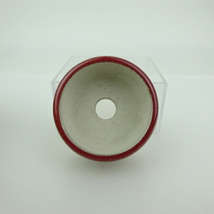 盆栽鉢 青香 小鉢 長辺 約5.9cm 丸鉢 上下帯 釉薬 j1198419801