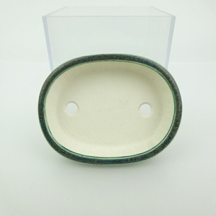 盆栽鉢 青香 小鉢 長辺 約8.5cm 楕円鉢 釉薬 b1198416635