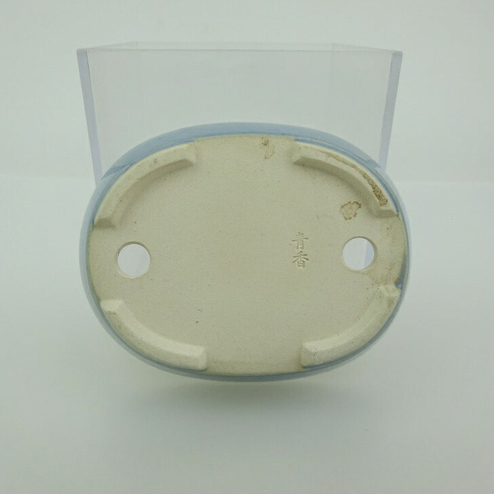 盆栽鉢 青香 小鉢 長辺 約 8.5cm 楕円 鉢 釉薬 現品 品名青香...