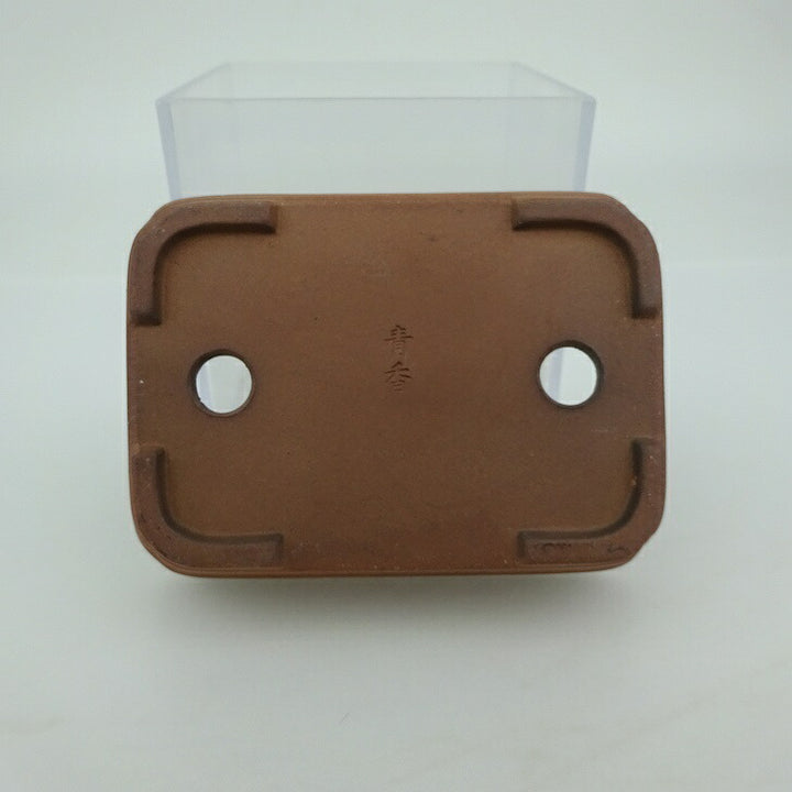 盆栽鉢 青香 小鉢 長辺 約 9.5cm 長方 鉢 中帯 隅入 泥物 現品 品名青香...