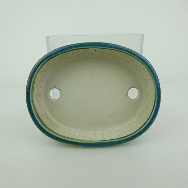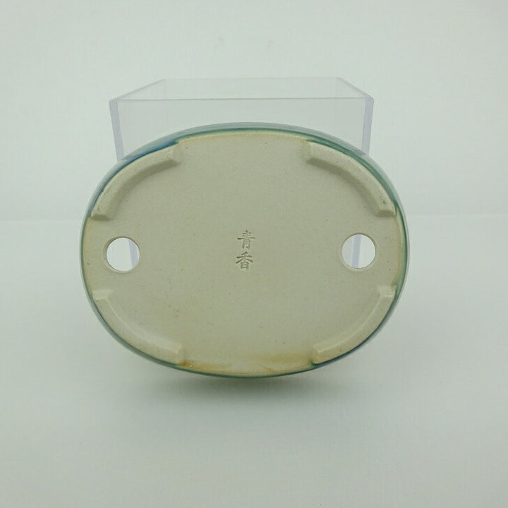 盆栽鉢 青香 小鉢 長辺 約9cm 楕円鉢 釉薬 m1198407030