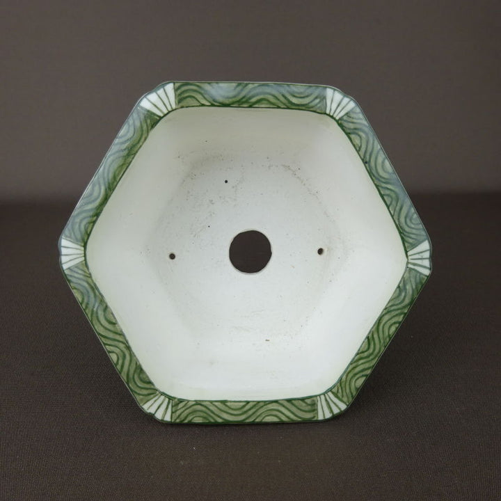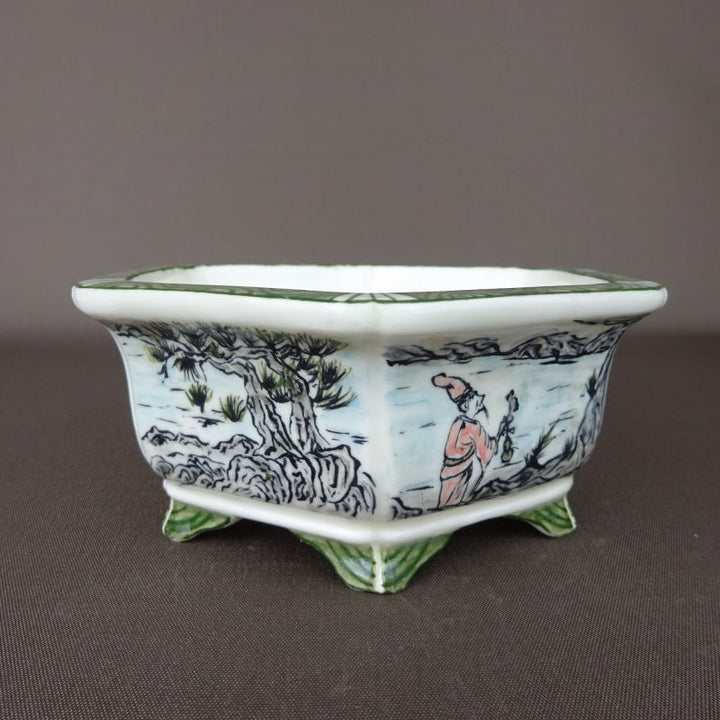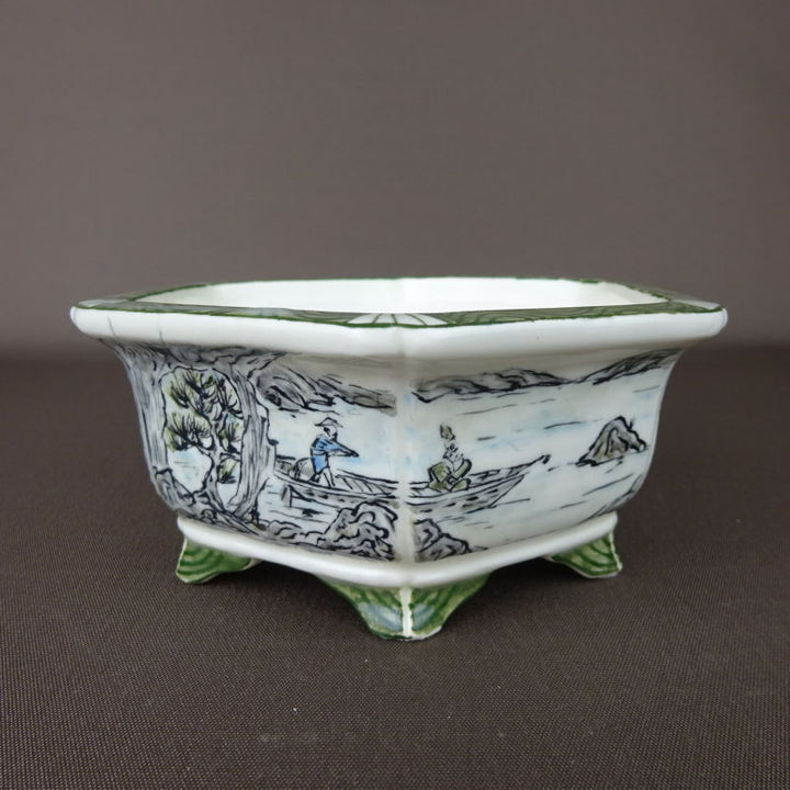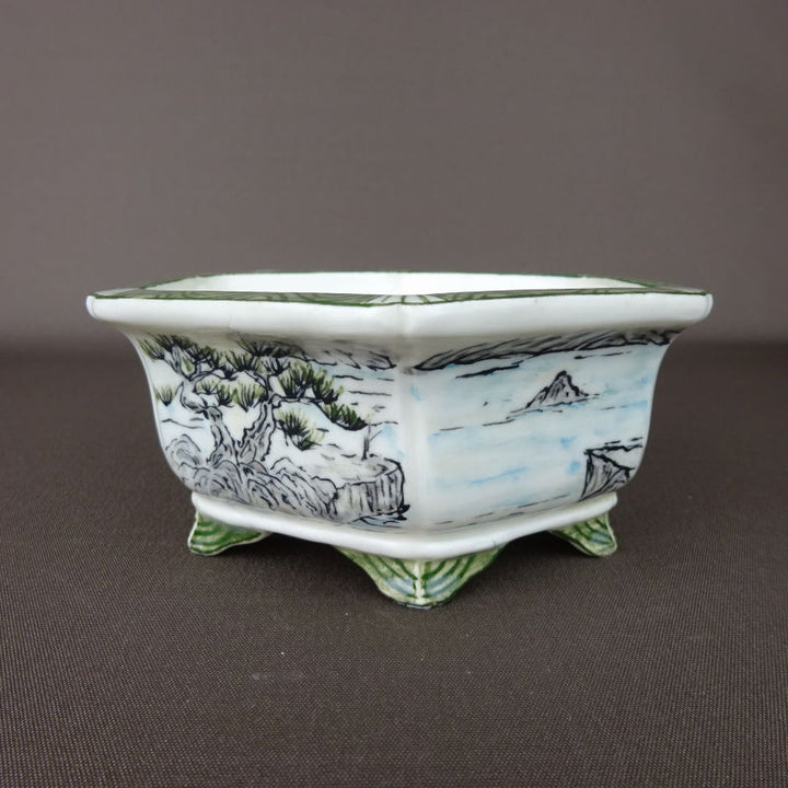盆栽鉢 高山画 ゆうき祥石ボデー 五彩山水図 六角鉢 p1198414244