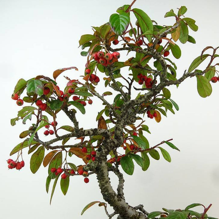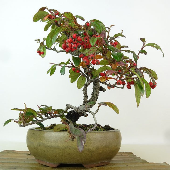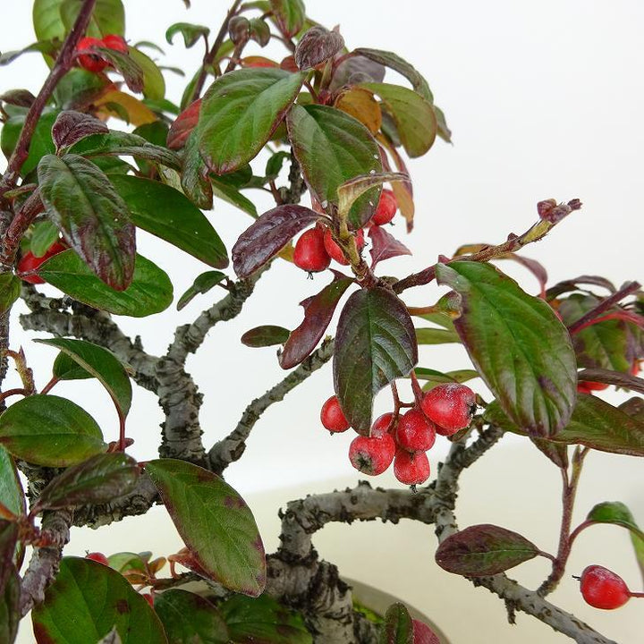 盆栽 コトネアスター 樹高 約 24cm バラ科 コトネアスター属 常緑~半常緑 観賞用 現品 ■植物ですので撮影時期や季節によって剪定などの手入れにより写真から変化がございます。撮影日をご確認のうえ、ご注文ください。 【コトネアスター盆栽】 春に芽を吹いて夏頃に枝の節に花芽をつくり、そのまま冬を越し春になると花芽は芽吹いて短い枝を伸ばし花が咲き、実がなります。花や実は前年伸びた枝にすでに付いているので、剪定によっては花付き、実付きが少なくなる...