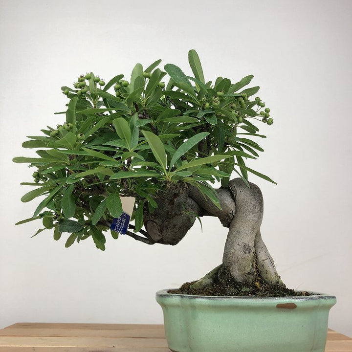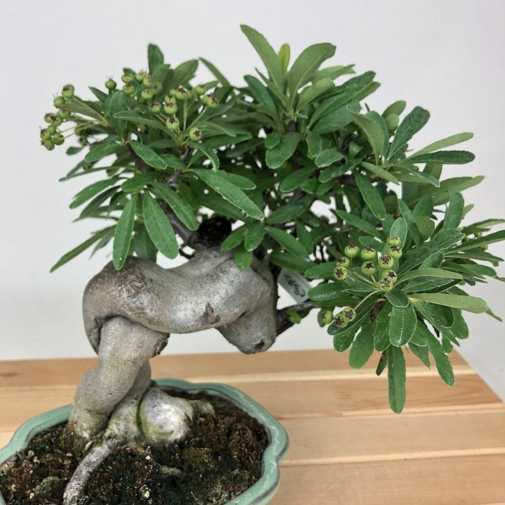 盆栽 ピラカンサ 樹高 約 20cm Pyracantha バラ科 常緑樹 観賞用 小品 現品 ■植物ですので撮影時期や季節によって剪定などの手入れにより写真から変化がございます。撮影日をご確認のうえ、ご注文ください。 【ピラカンサ盆栽】 開花時期は5月~6月頃、小さな5弁の白い花を咲かせます。果実はやや潰れたような球形でをしており、秋頃に色づきます。 ピラカンサにはいくつか種類があり、赤い実や黄色の実、濃い緑色の葉、白やピンクの斑が入るものも...