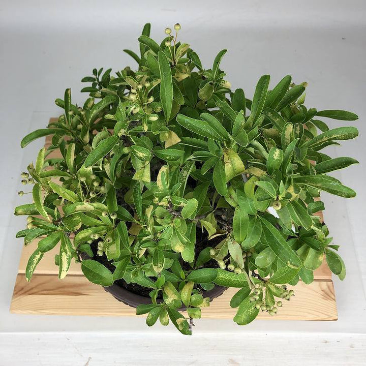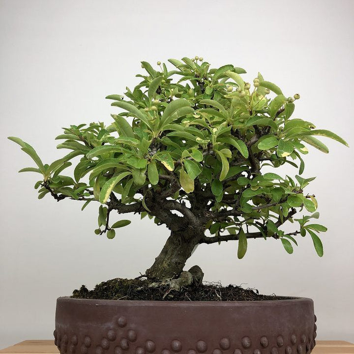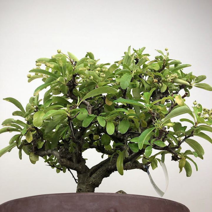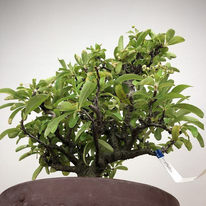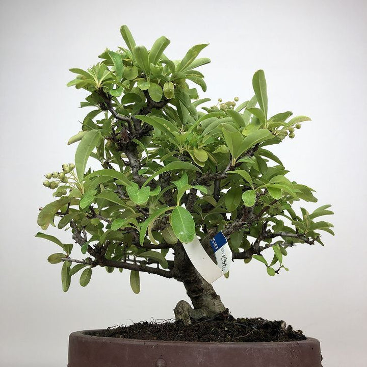 盆栽 ピラカンサ 樹高 約 27cm バラ科 常緑樹 観賞用 現品 ■植物ですので撮影時期や季節によって剪定などの手入れにより写真から変化がございます。撮影日をご確認のうえ、ご注文ください。 【ピラカンサ盆栽】 開花時期は5月~6月頃、小さな5弁の白い花を咲かせます。果実はやや潰れたような球形でをしており、秋頃に色づきます。 ピラカンサにはいくつか種類があり、赤い実や黄色の実、濃い緑色の葉、白やピンクの斑が入るものもあり、枝には鋭いトゲがありま...