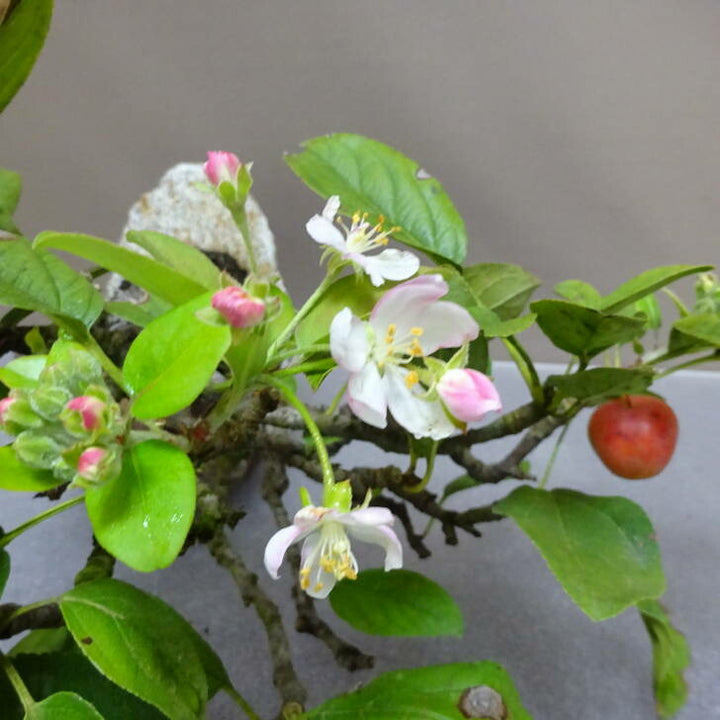 盆栽姫林檎樹高約20cmひめりんごMalusprunifoliaヒメリンゴバラ科リンゴ属落葉樹観賞用現品 ■植物ですので撮影時期や季節によって剪定などの手入れにより写真から変化がございます。撮影日をご確認のうえ、ご注文ください。 ■翌年の実付きをよくするために観賞後の11月末~12月にかけて摘果しています。お届けの商品にはリンゴの実がない場合がございます。 【姫リンゴ盆栽】 開花時期は4月~6月頃にかけて、はじめは薄いピンク色で、満開時には白く...