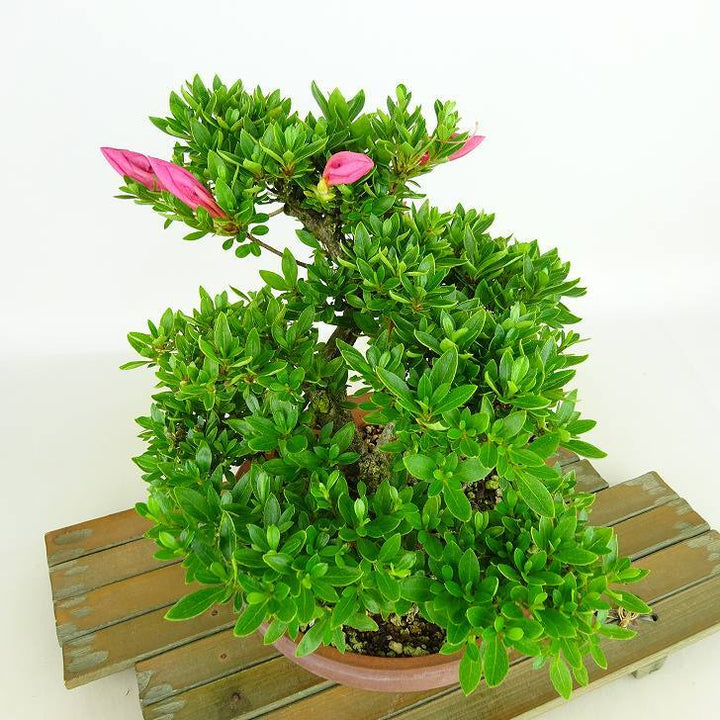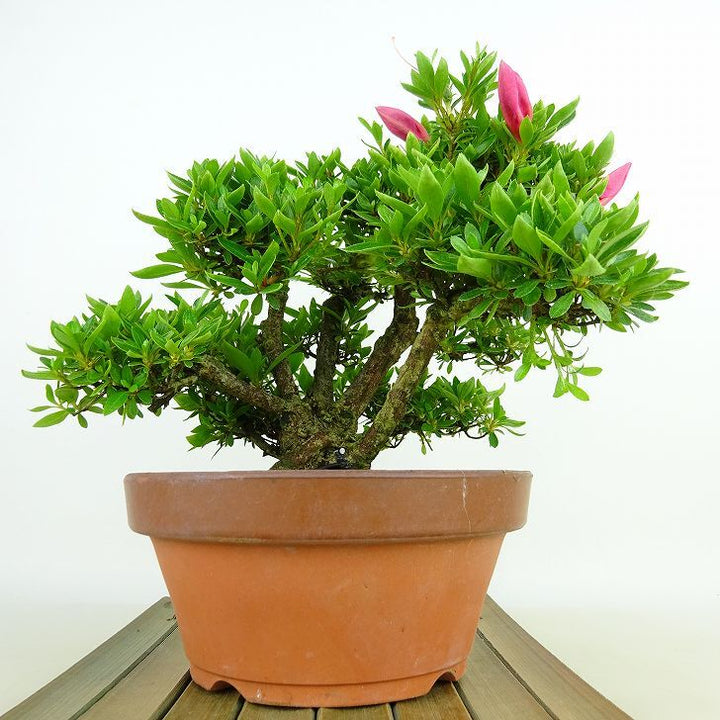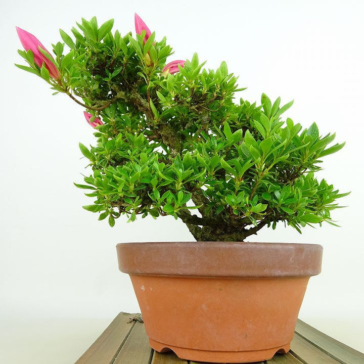 盆栽 皐月 明美の月 樹高 約 16cm さつき サツキ ツツジ科 常緑樹 観賞用 小品 現品 ■植物ですので撮影時期や季節によって剪定などの手入れにより写真から変化がございます。撮影日をご確認のうえ、ご注文ください。 ■花が終わり次第、来年にむけて開花のためのお手入れにはいります。撮影日から経過した商品はあくまで花色などの参考までにごらんください。 【皐月盆栽】 サツキは、古くから自然発生種や品種改良もされ、多くの園芸品種が作られており、今で...