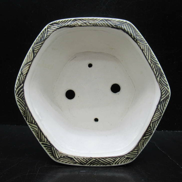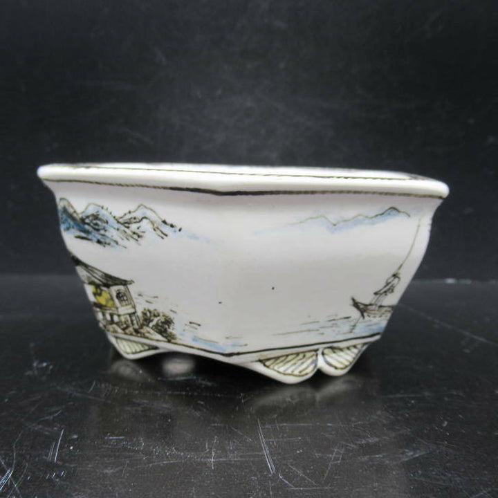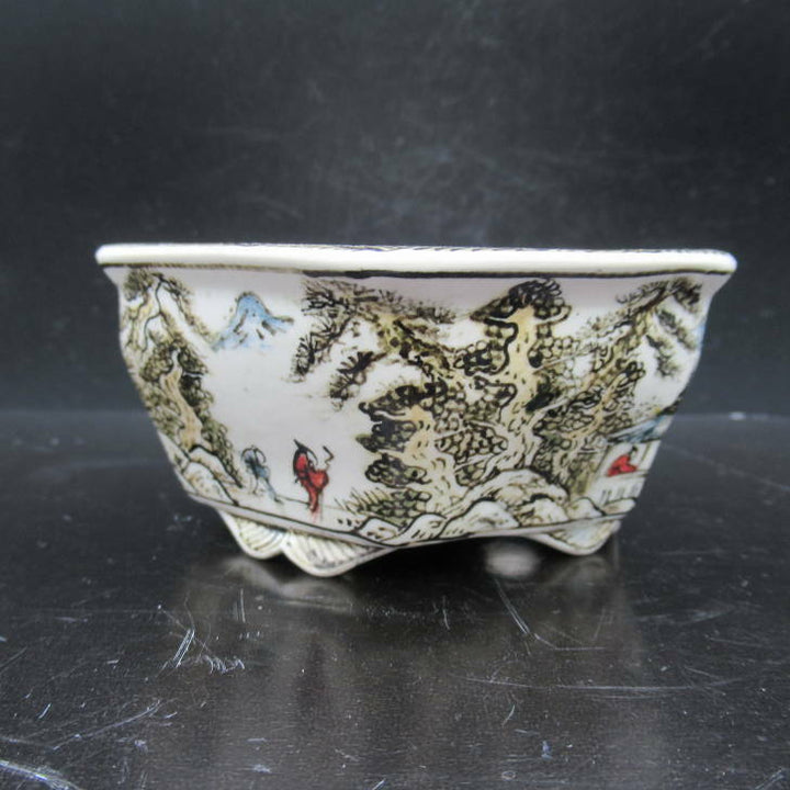 誠昭 色絵 山水人物図 六角 盆栽鉢 新品 d1198420644