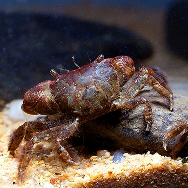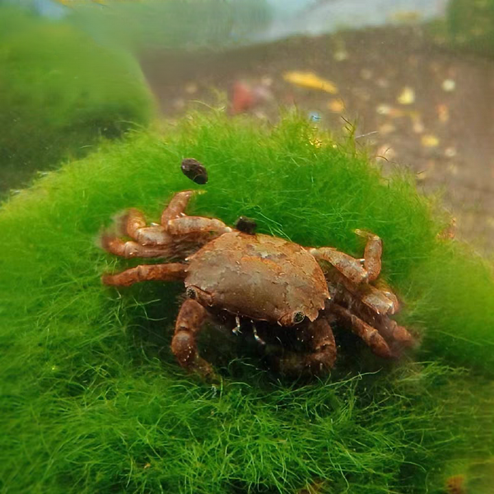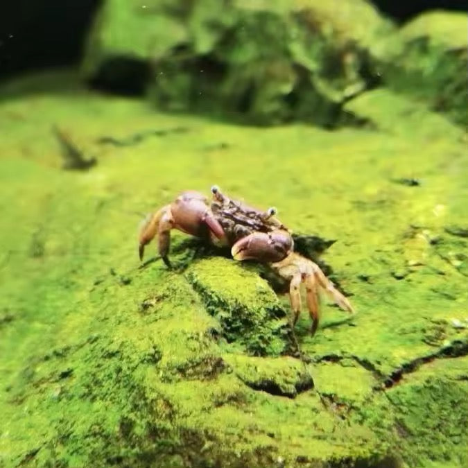 迷你櫻桃蟹,可深水 淡水飼養,親測效果不錯,熱帶蟹不耐極寒氣溫,雜食性,飼料,紅蟲豐年蝦都會吃,死魚死蝦它會吃。但不會追逐和捕捉活魚蝦。
