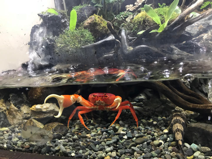 Pirate Crab are carnivorous and very aggressive. They can easily kill similar size crayfish, scorpion and other freshwater crabs.