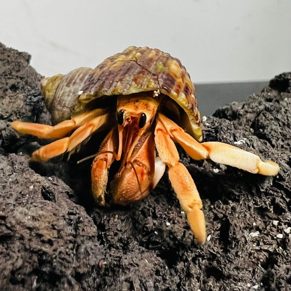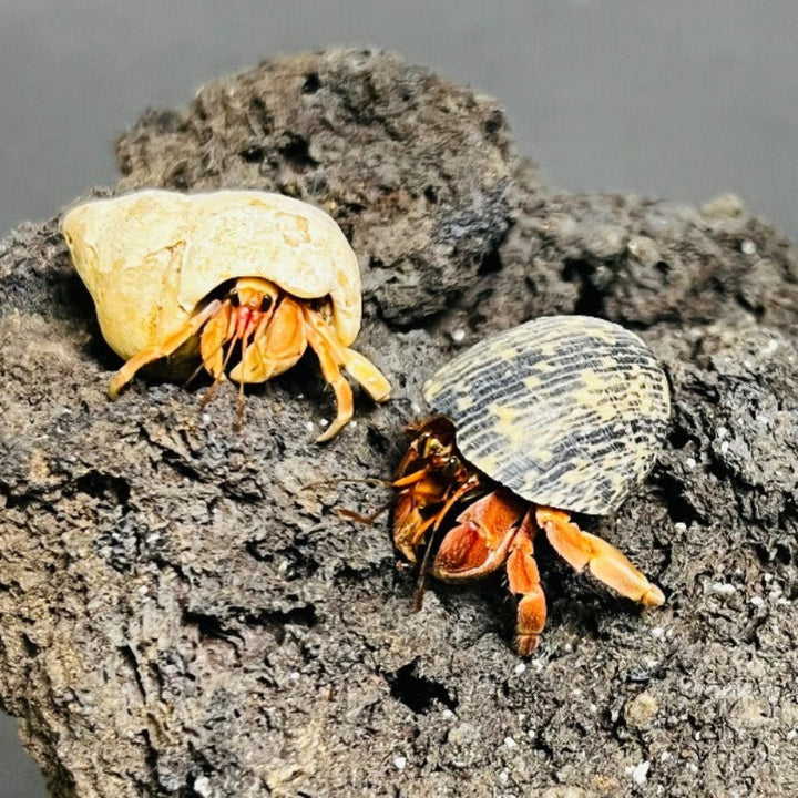 紅灰白寄居蟹是灰白寄居蟹的獨特色型變種,以其迷人的紅褐色與灰白色相間體色聞名。成體甲殼呈現溫暖的紅棕色調,搭配獨特的灰白斑紋,觸角則帶有醒目的橙紅色,在光照下格外鮮明。這種自然色變個體保留了灰白寄居蟹的所有特徵,特殊體色更具觀賞價值。牠們常見於東南亞沿海地區,性格溫和且適應力強,是兼具美麗與易養特質的陸寄居蟹品種。